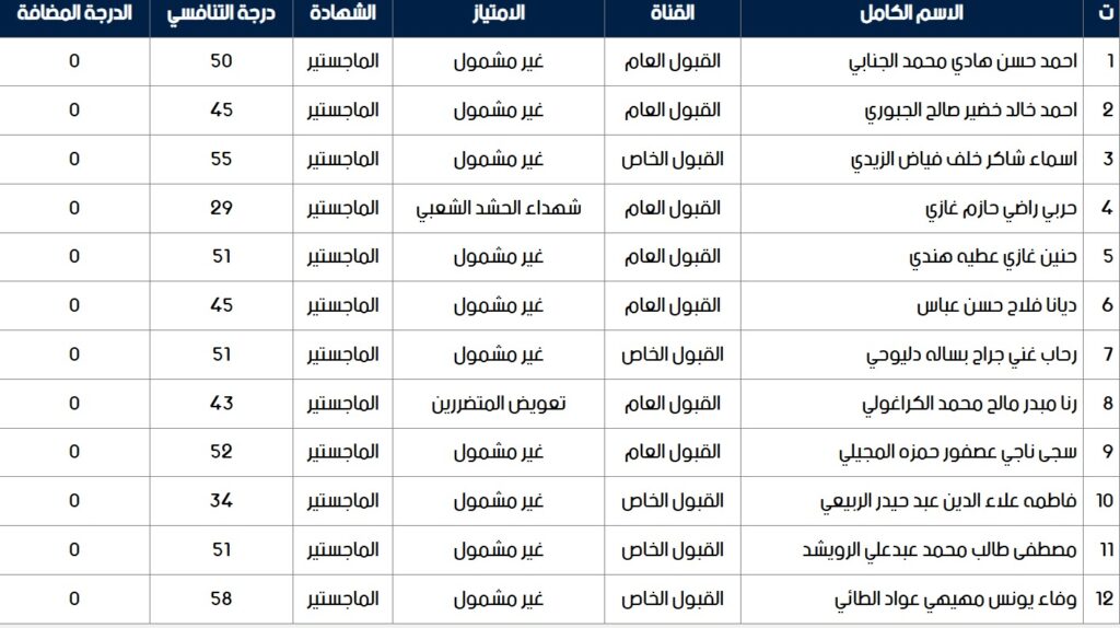 نتائج القبول الاولي للطلبة للمتقدمبن للدراسات العليا في قسم اللغة العربية كلية التربية الاساسية / جامعة واسط للعام الدراسي 2025-2026